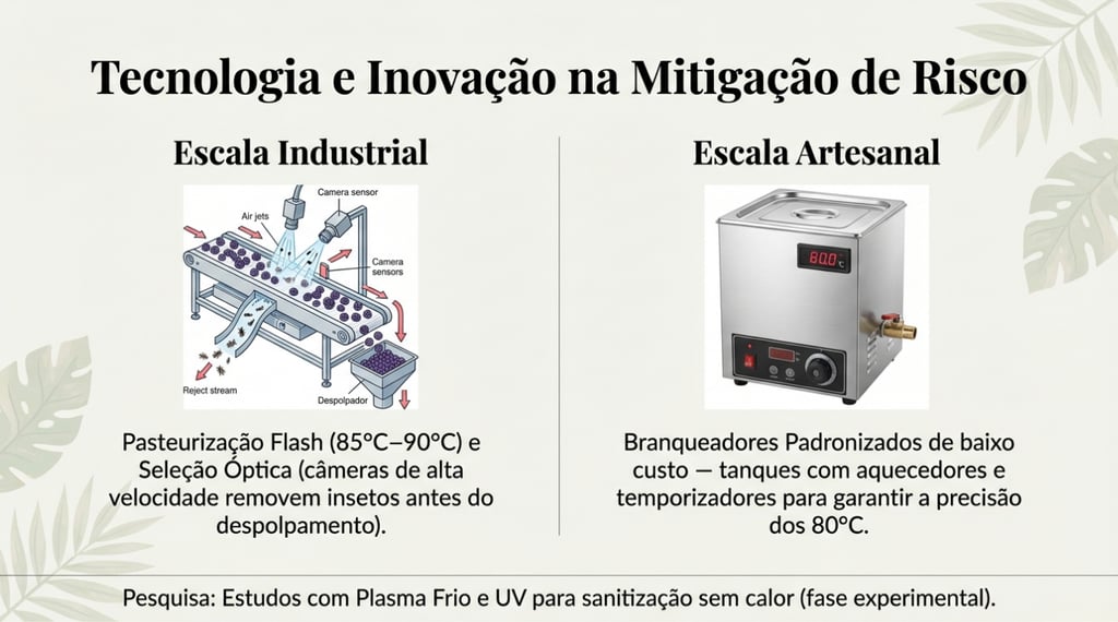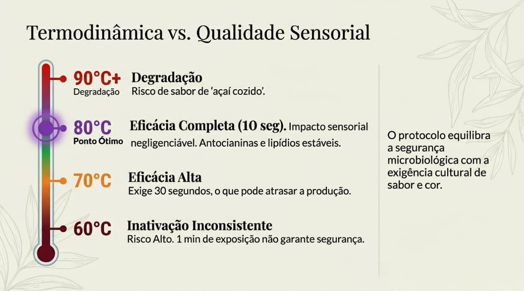 A escolha da temperatura de 80°C é estratégica. Estudos demonstram que essa é a temperatura necessária para garantir que o calor penetre em todas as dobras da casca e na matéria orgânica onde o parasita possa estar protegido, garantindo a inativação completa sem degradar as antocianinas (pigmentos antioxidantes) ou alterar o sabor.