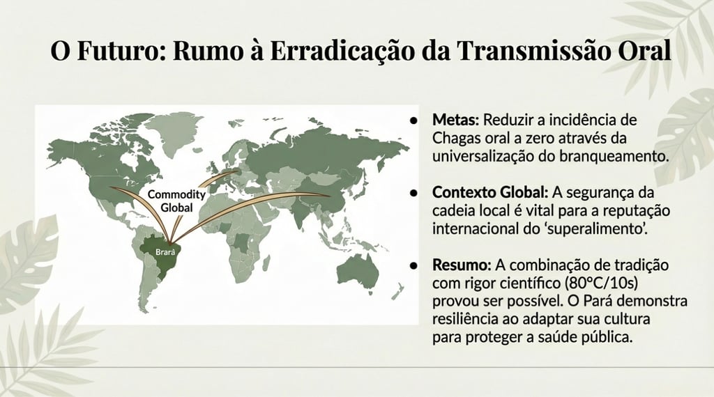 Em 28 de janeiro de 2026, o Governo do Pará instalou formalmente um comitê para modernizar e fiscalizar a cadeia produtiva, fortalecendo o programa "Açaí Limpo". O objetivo é transformar batedores artesanais em unidades de processamento seguras, combatendo a barreira cultural de que o branqueamento "cozinha" o açaí — um mito que ainda leva consumidores a buscarem produtos informais e perigosos.